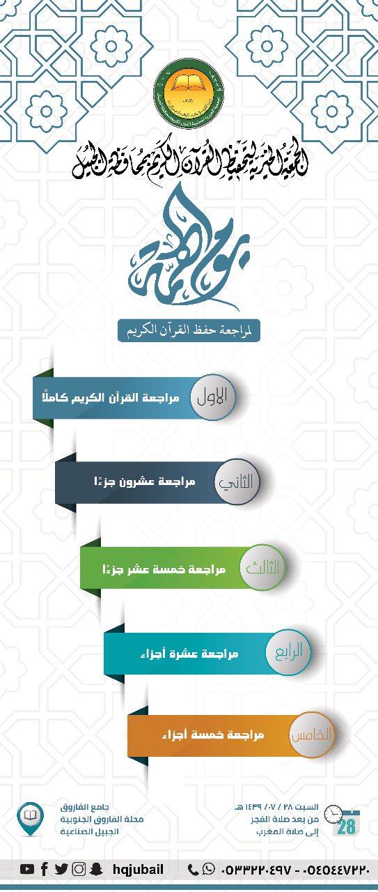 تحفيظ القرآن بالجبيل در توییتر 5 فروع للمشاركين في برنامج يوم الهمة لمراجعة حفظ القرآن الكريم المقام حاليا بجامع الفاروق بـ الجبيل الصناعية